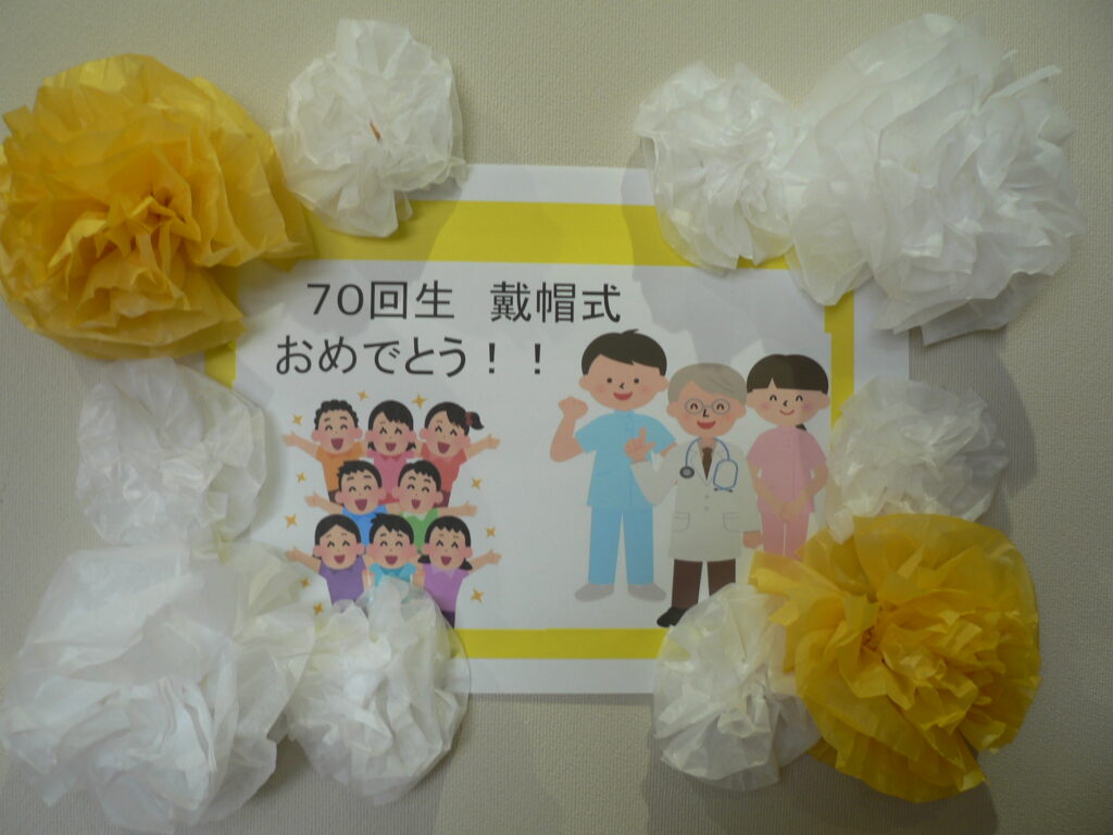 戴帽生誓いの言葉では、どんな時代になっても変わらないのは「人を思いやる心」であり、看護の原点だと思う。患者様一人ひとりの心に寄り添える看護師を目指していきたい。と准看護師を目指す者として自覚ある誓いの言葉を述べる事が出来ました。